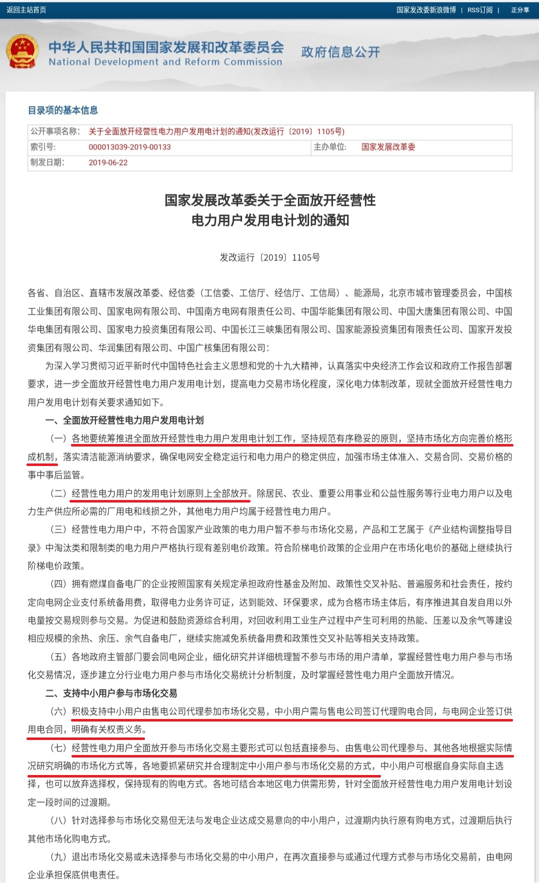 2019年6月22日國(guó)家發(fā)改委下發(fā)《關(guān)于全面放開(kāi)經(jīng)營(yíng)性電力用戶發(fā)用電計(jì)劃的通知》(發(fā)改運(yùn)行【2019】1105號(hào)文)。積極支持中小用戶由售電公司代理參加市場(chǎng)化交易,中小用戶需與售電公司簽訂代理購(gòu)電合同。